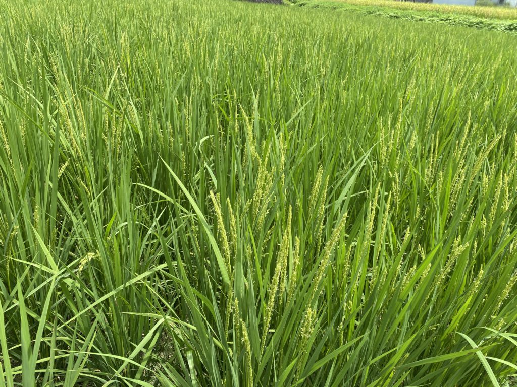 ところが、ここでいもち病が発生してしまう!薬剤は使用せずに苦土石灰の希釈液を散布。その後は元気に育ってくれ無事に穂も出たが・・・